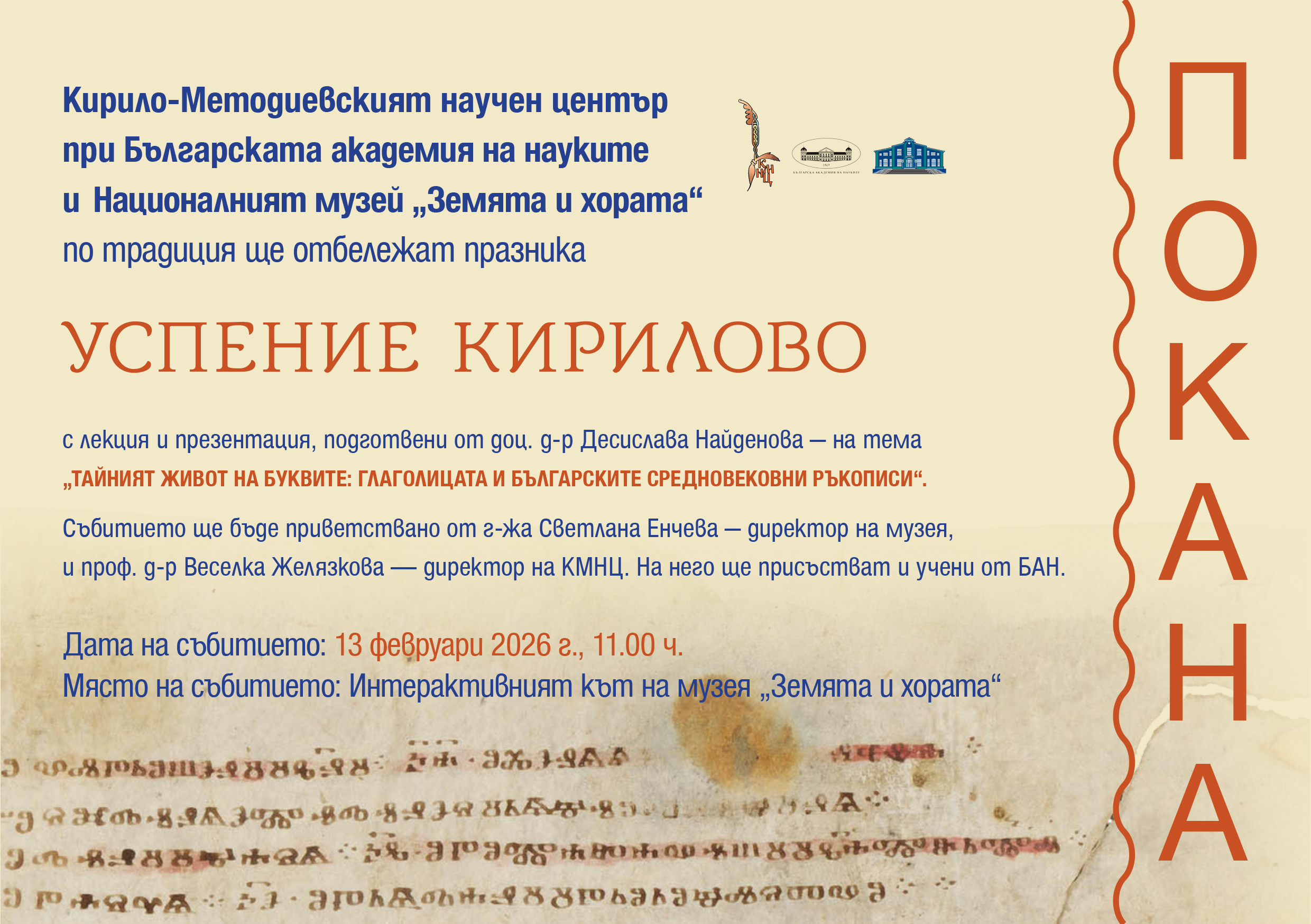 Кирило-Методиевският научен център при БАН и Националният музей „Земята и хората“ отбелязаха съвместно и по традиция блаженото успението на св. Константин-Кирил Философ.