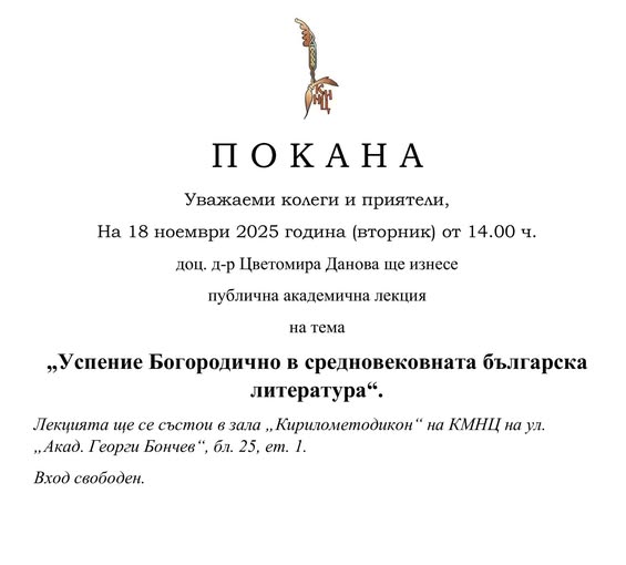 Покана за академична лекция на доц. д-р Цветомира Данова