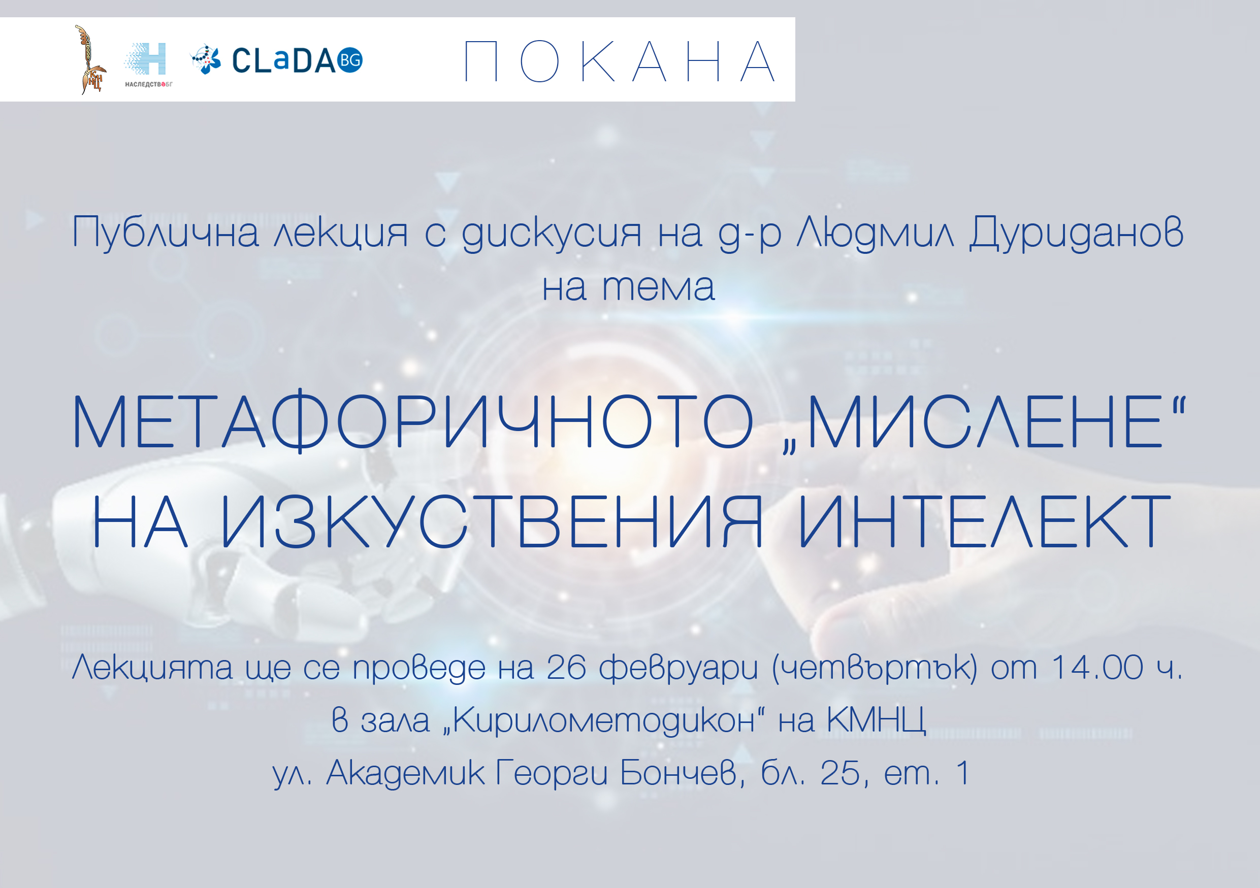 Първата публична лекция с дискусия от поредицата за изкуствения интелект и неговото приложение в хуманитаристиката се проведе на 26 февруари 2026 г. (четвъртък) от 14.00 ч. в зала „Кирилометодикон“ на…